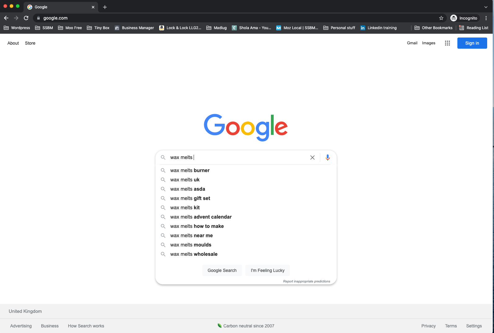 You can use the settings to only search within your country and you can choose the timeframe in which you want to analyse your topic. You will see that if you choose to analyse activity over the last 7 days (which, in this case, will be the start of Christmas activity), the results will be very different to a search across the year or, say, in the summer. Google SearchTo find out what people are searching for right now, Google search is your friend. Open Chrome (or any browser) in an incognito window. In Chrome, click on File > New Incognito Window. Usually, Google’s searches are partly based on what you’ve searched for before but going incognito allows Google to treat you as a stranger with no browsing history. When you type in your search term and hit the space bar, Google creates a list of terms that people are searching for that relate to your keywords.